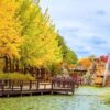 - Đảo Nami – Nơi yên bình, thơ mộng và ngắm nhìn những hàng cây ngân hạnh, là phim trường của bộ phim nổi tiếng “Bản tình ca mùa đông”. Cách thủ đô Seoul 63km về phía Đông, hòn đảo Nami như một chiếc lá khổng lồ nằm bình yên trên dòng sông Heongpyung thơ mộng.